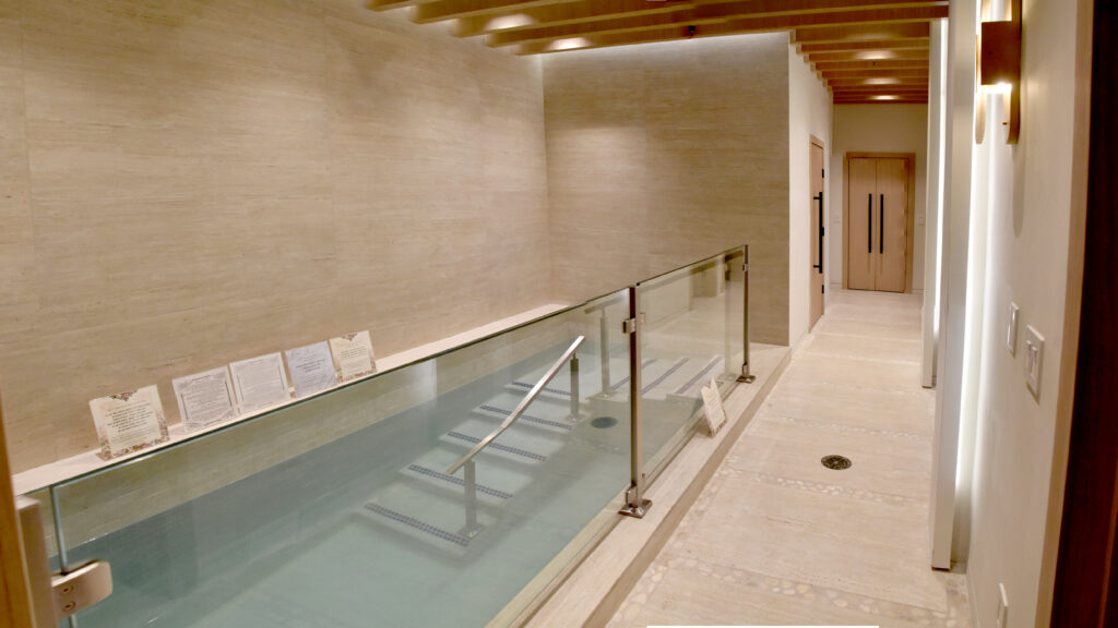 Women’s Mikvah is located at the North end of the building (in the rear-under burgundy canopy).
